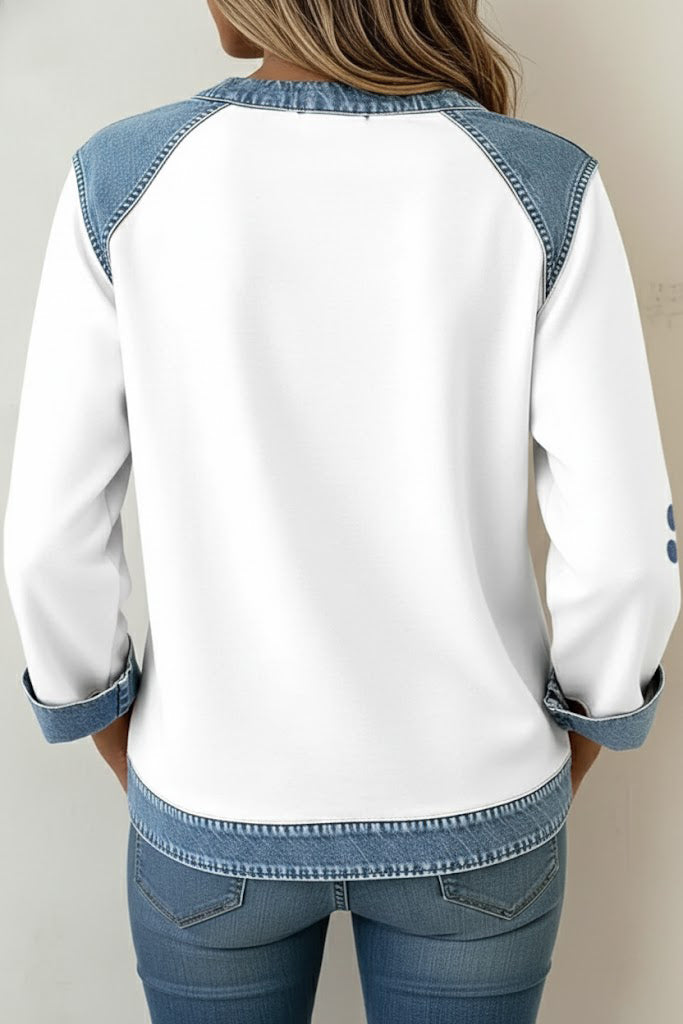 La felpa girocollo Carina unisce un patchwork creativo ispirato al denim a un taglio fluido e contemporaneo, per dare al tuo outfit un tocco elegante senza esagerare. Il suo design unico trasforma anche i look più semplici in capi di grande impatto.